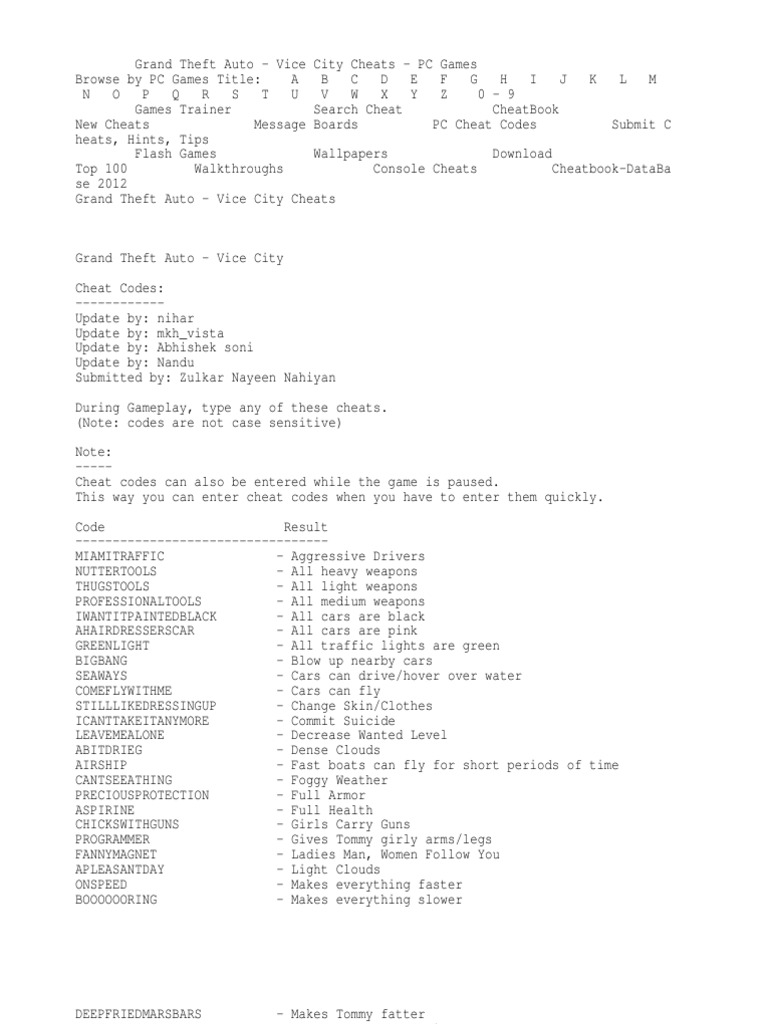 Manual Gta Vice City Ps2 Cheat Codes Money Vice City Android Cheats Codes In This App